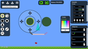 - Joints & Physics: Connect objects and watch them move with realistic 2D physics.